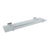 Полка в ванную комнату прямоугольной формы изготовлена из матового стекла. Держатели и бортик изготовлены из металла, покрытие хром.
