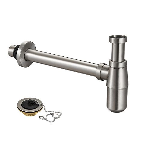 Сифон для раковины антивандальный, из нержавеющей стали.матовый ,с нержавеющей решеткой и пробкой это эстетичное и функциональное устройство для подключения раковины к системе канализации.
