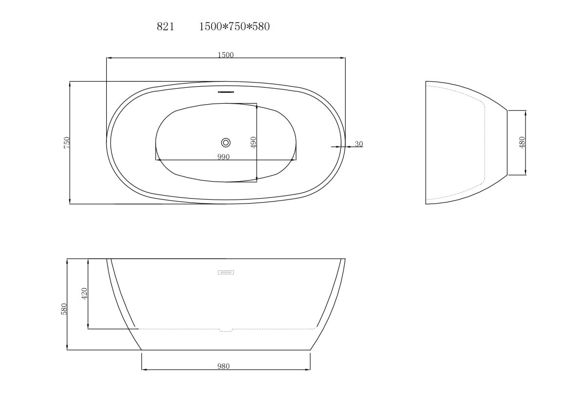 Ванна акрил ZILI DO WB-821 1500*750*580мм