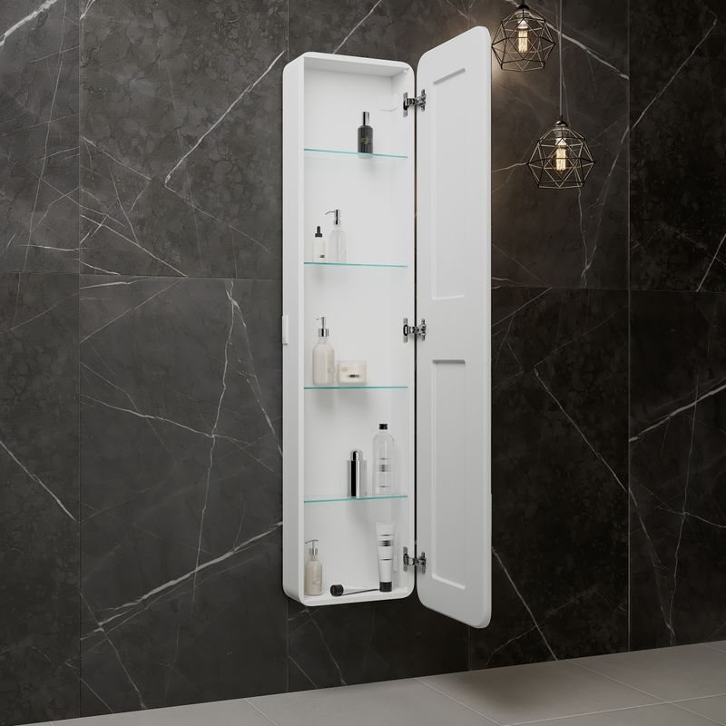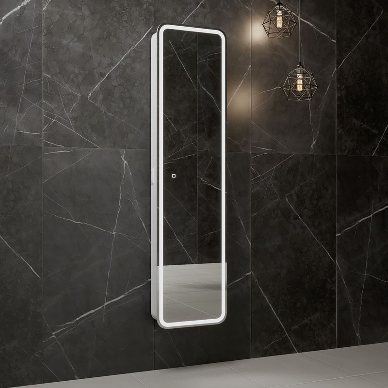 Зеркальный пенал "Lorenzo" 400х1600 с розеткой. Корпус выполнен из качественного МДФ в пленке ПВХ, что обеспечивает защиту от влаги.