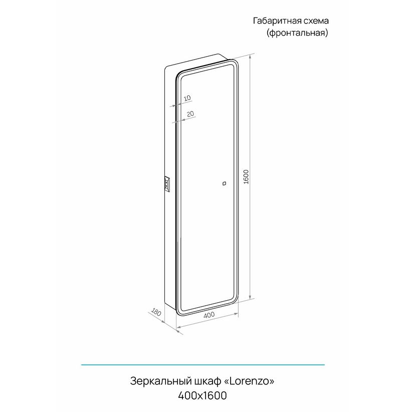Зеркальный пенал LORENZO LED с розеткой ШВГ: 400*1600*180мм